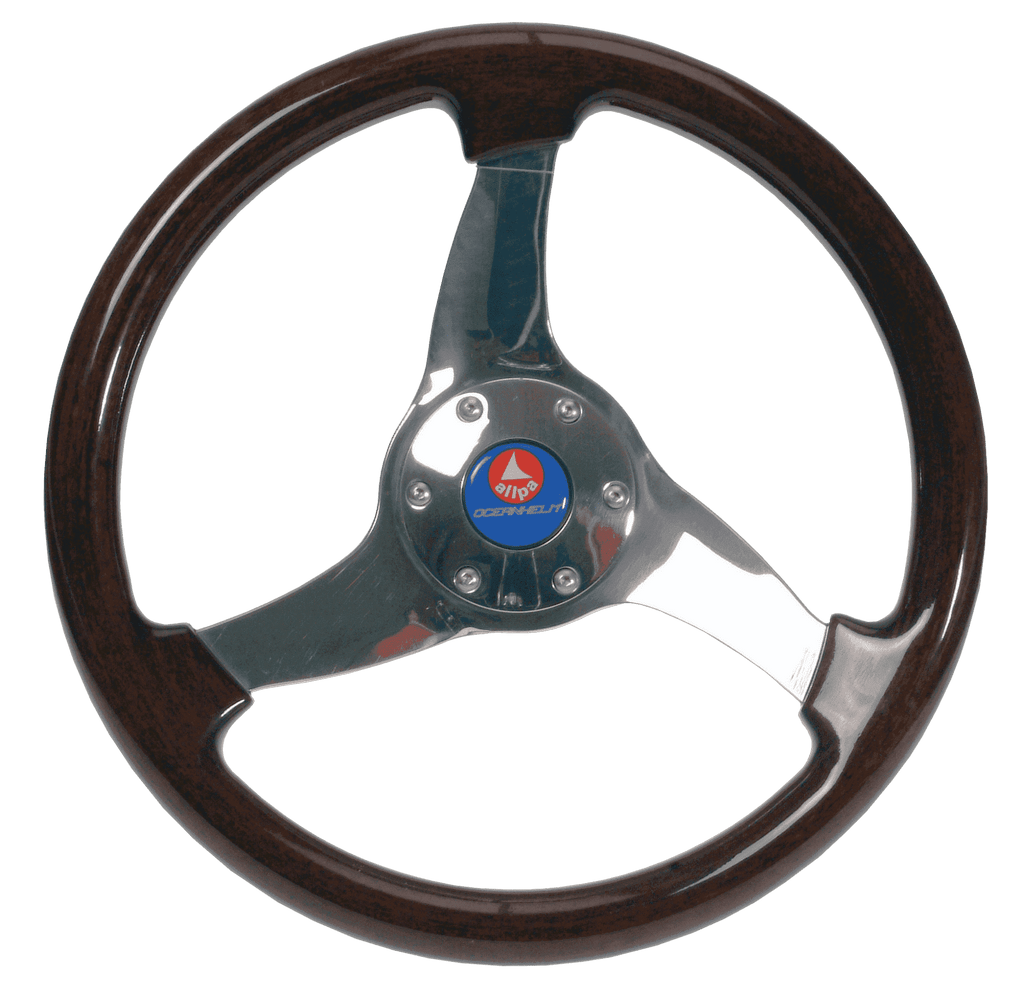 Allpa 3-Speichen Steuerrad 'Elica' Niro Mit Mahagoni Griff, Ø350mm, Tiefe 95mm