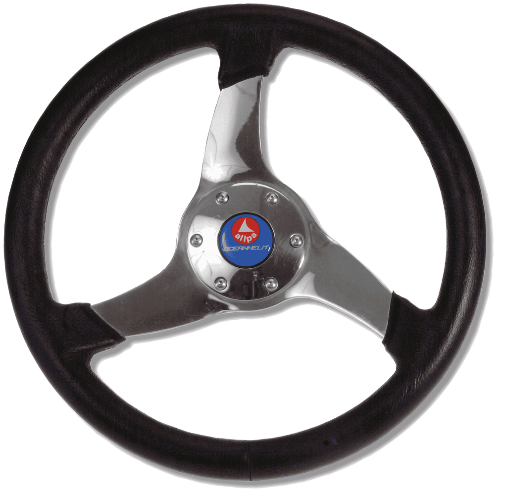 Allpa 3-Speichen Steuerrad 'Elica' Niro Mit Schwarzem Polyurethan Griff, Ø350mm, Tiefe 95mm