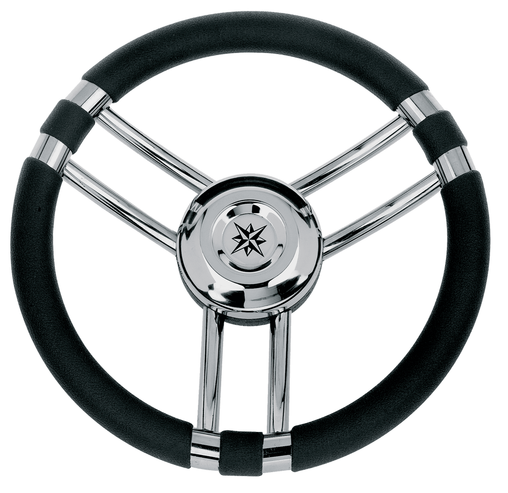 Allpa 3-Speichen Steuerrad 'Modell 22' Niro Mit Schwarzem Polyurethan Griff, Ø350mm, Tiefe 60mm