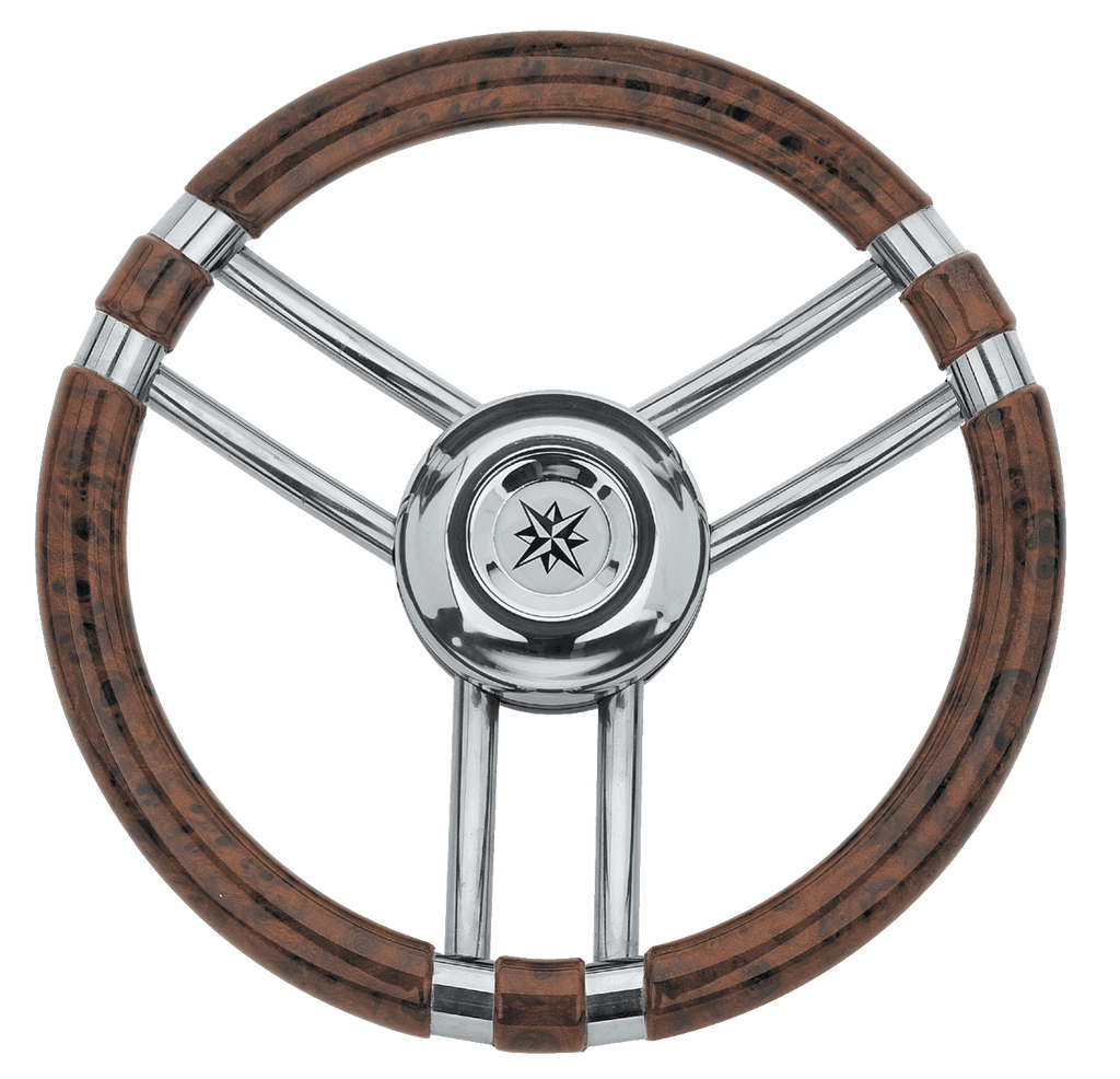 Allpa 3-Speichen Steuerrad 'Modell 22' Niro Mit Wurzelholz-Look Griff, Ø350mm, Tiefe 60mm