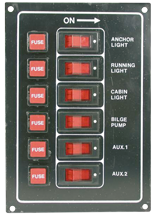Mit 5A Glassicherungen, aufleuchtenden Schaltern, Klebern mit Verzeichnis und Befestigungsmaterial