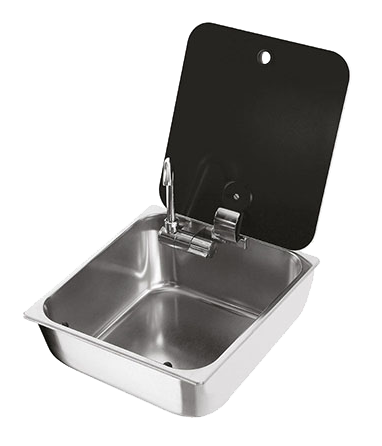 Allpa Edelstahlspüle, Quadratisch, Mit Gehärtetem Glasdeckel, 350x320x150mm Inkl. Kaltwasserhahn