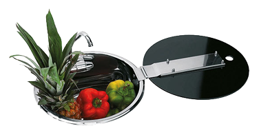 Allpa Edelstahlspüle, Rund, Mit Gehärtetem Glasdeckel, 300x180mm Inkl. Kaltwasserhahn