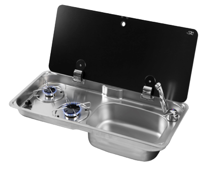 Allpa Gaskocher Mit Spülbecken Und Abdeckplatte, Brenner: 1x Klein/1x Mittel