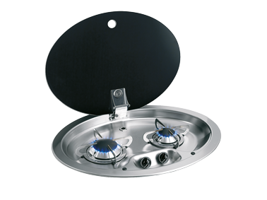 Allpa Gaskocher Oval Mitt 2 Brenner Komplett Mit Gehärtetem Rauchglas-Deckel, 510x390x80mm