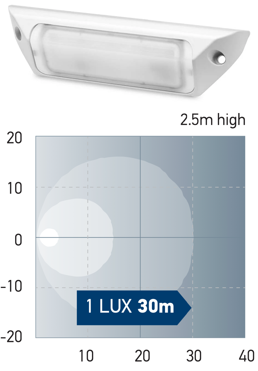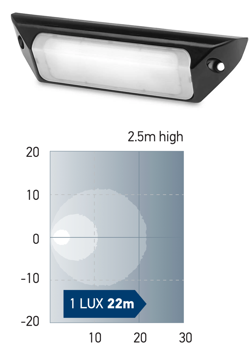 Beide Lampenbieten eine gleichmäßige Ausleuchtung im Nahbereich direkt unter der Lampe.Das Licht wird in einem festen Winkel von 45 Grad nach unten projiziert. Dies wird ohne Halterungen möglich. Energieeffiziente, vollständig abgedichtete, stoß- und vibrationsfeste Beleuchtung bietet ihnen dieses Modell. Fortschrittliche Elektronik sorgt für gleichmäßige Beleuchtung und Stromkreisschutz von 12/24V DC und damit für eine