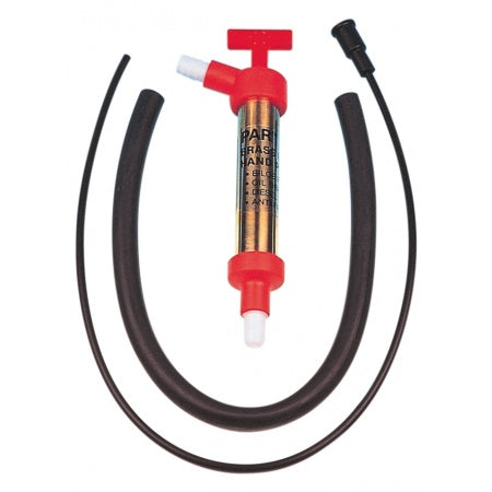 Ein kompakte Handpumpe aus Messing für den Ölwechsel der Maschine oder des Getriebes, Leistung bis 5 l/ min, mit Schlauch 13 mm und 6 mm Ölpeilstaböffnung.