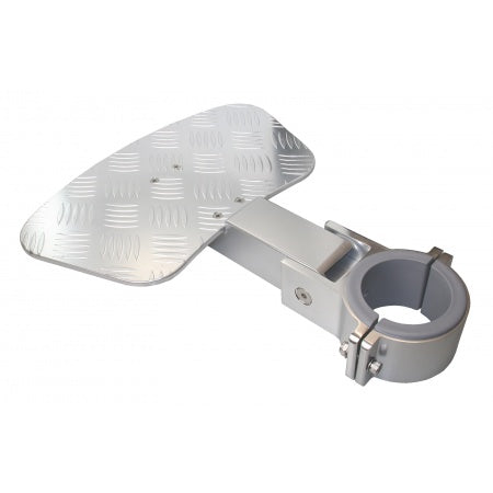 Einfach zu montierende und hochklappbare Fußstütze als eloxiertem Aluminium.