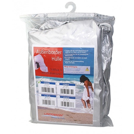 Außenborder Abdeckung aus Polyester 300 den mit PA Beschichtung für bestmöglichen Nässe- und UV-Schutz. Mit Gummizug und Reißverschluss. Der Außenborder ist komplett mit Schaft verpackt. Geschützt vor Sonneneinstrahlung, Regen und Staub.