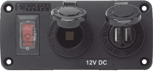 Kompaktes, leicht zu installierendes DC – Ladepanel. Der integrierte Sicherungsautomat mit Schaltfunktion sichert den Stromkreis ab und ermöglicht die komplette Abschaltung des Panels, zum Schutz vor unnötigem Stromverbrauch. Die Silikonschutzkappe des Schutzschalters und die beiliegende Moosgummidichtung ermöglichen eine Aussenmontage in geschützten Bereichen.Panel bestückt mit: