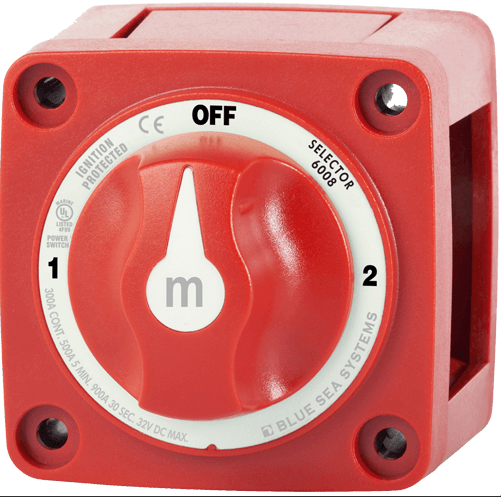 Wahlschalter für Motorboote mit 2 Starterbatterien.