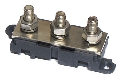 MINUS-Sammelschiene 3-fach. Strombelastbarkeit 250 A. Alle Bolzen M10,