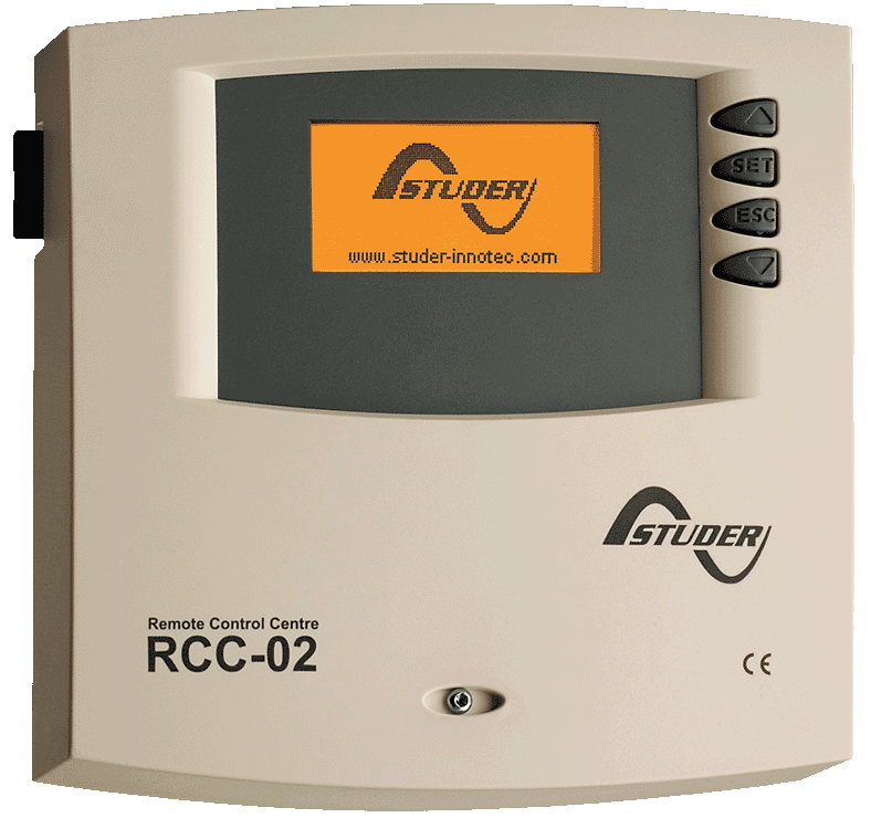 An der Fernbedienung RCC-02/-03 können viele Einstellungen des Kombi-Wechselrichters programmiert werden, wie etwa die Ladekennlinie des Batterieladers und die verschiedenen Betriebsarten. Auch können die beiden Hilfskontakte programmiert werden, die z.B. zur Generatorstarteinrichtung, zur Abschaltung weniger wichtiger Verbraucher, zur Anzeige einer Störung, zum situationsabhängigen Batterieladen dienen.