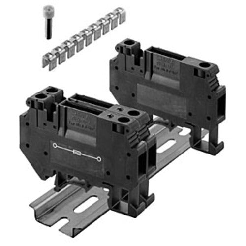 Eingangsseite brückbare Sicherungsklemme für Serie 1610. Für Hutschienenmontage, Anschluss über Schraubklemmen. Kabelquerschnitt max. 6 mm².