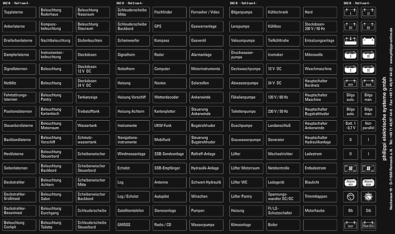 Ein Bogen mit Beschriftungsschildern (SKZ) und schwarze Befestigungsschrauben werden mitgeliefert.