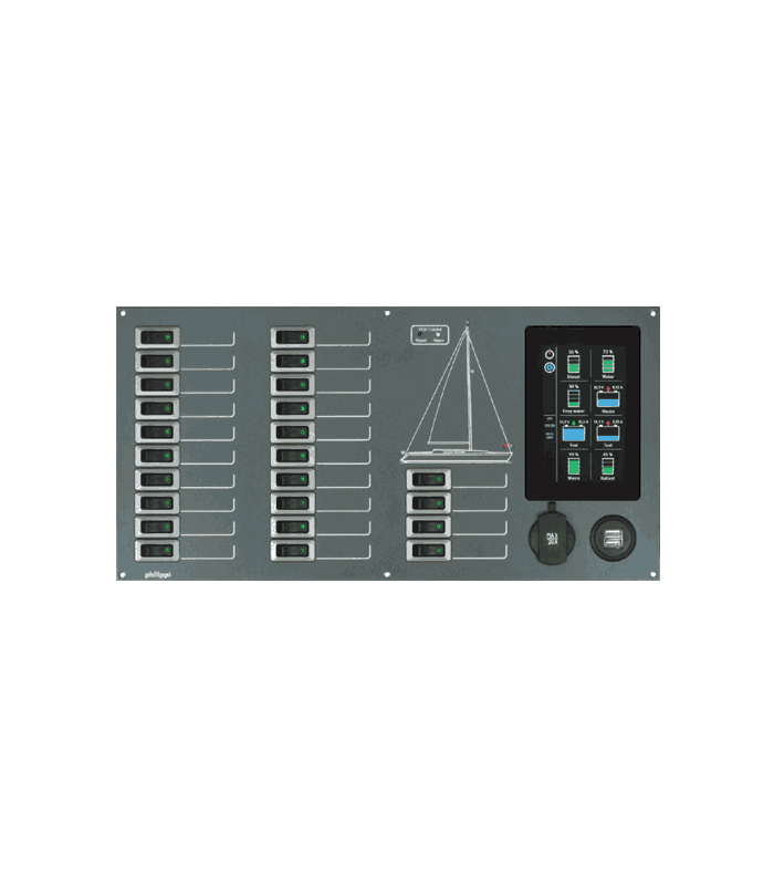 Stromkreisverteiler mit 24 Stromkreisen mit thermischen Wipp-Schutzschaltern, Nennstromstärke 10 A.