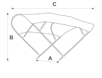 Die dreibogige Struktur ist sehr kompakt und robust. Sie wird mit einem vollständig wasserdichten Netz und einer Schutzhülle geliefert. Es lässt sich leicht freistehend aufstellen oder mit den optionalen Stützstangen fest installieren und ist ideal für offene Boote und Flöße.