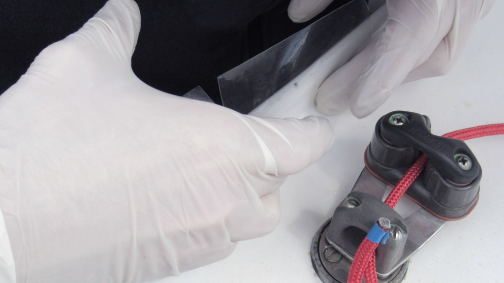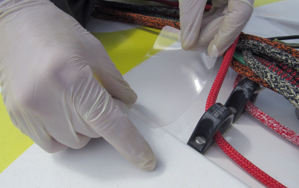 Transparentes PUR (Polyurethan) Verschleißpolster, ideal um zu verhindern, dass Blöcke und Leinen an Deck und Gelcoat reiben und scheuern.