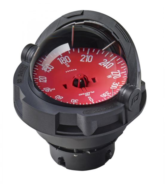 Einbaukompass für die Steuersäule oder Sockel. Große, flache Rose, sehr gut ablesbar, wenn im Stehen gesteuert wird.