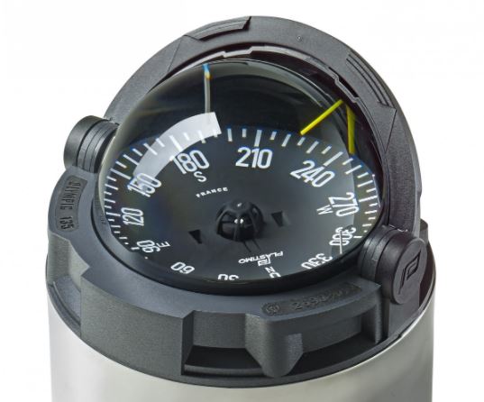 Einbaukompass für die Steuersäule oder Sockel. Große, flache Rose, sehr gut ablesbar, wenn im Stehen gesteuert wird.