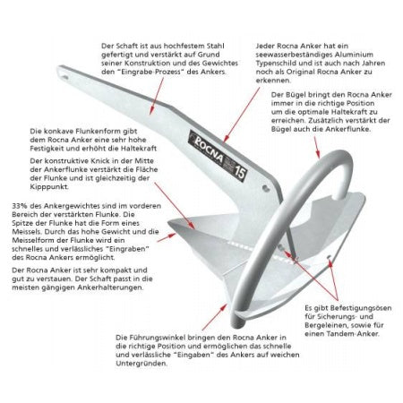 Es gibt für jede Schiffsgröße den passenden Anker. ROCNA Anker sind von 4 kg bis 275 kg lieferbar.