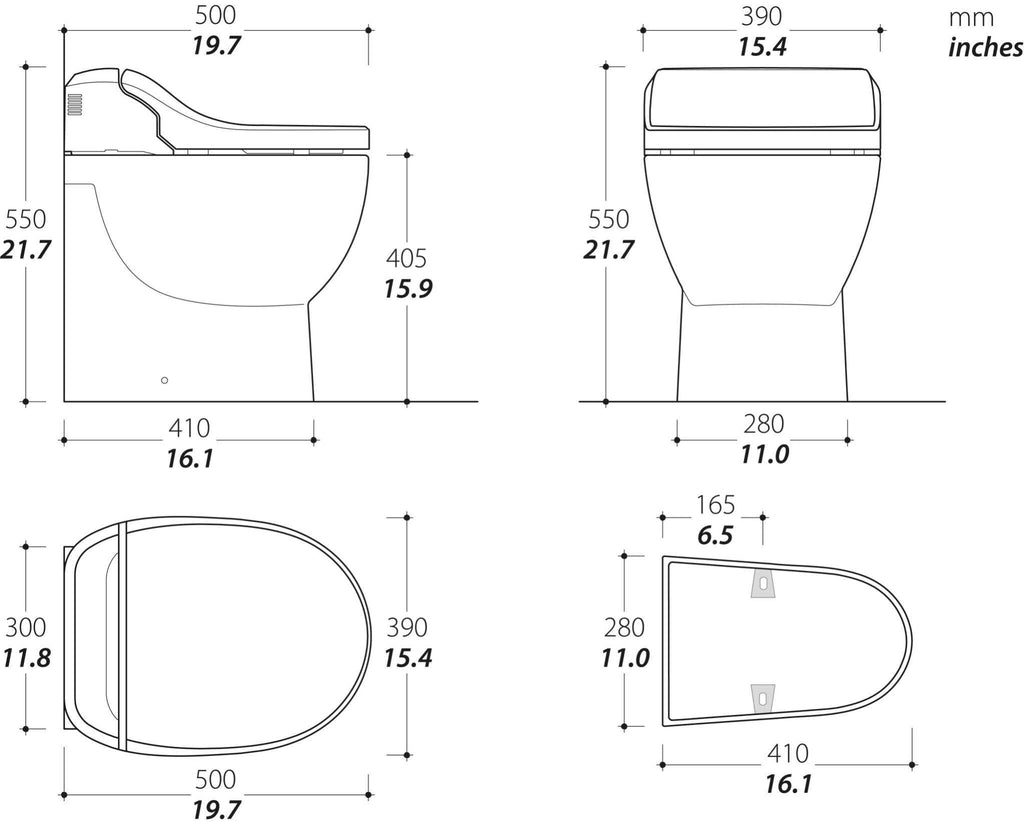 - Sitz und Deckel: Elektronisch + Softclose
