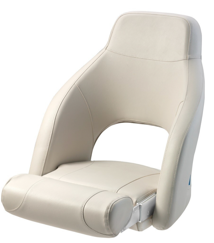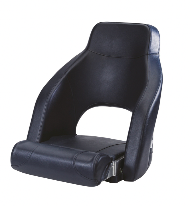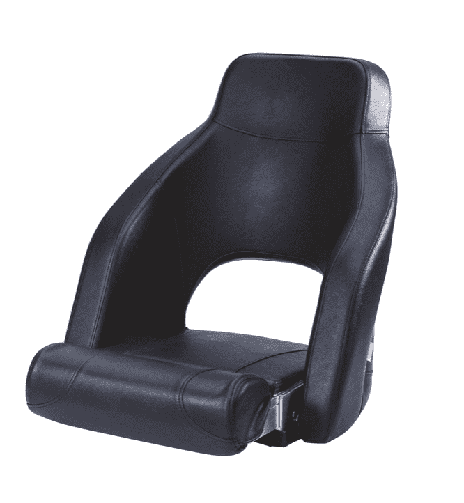Ein sportlicher und komfortabler Bootsstuhl, der vordere Teil kann zum Lenken im Stehen hochgeklappt werden.
