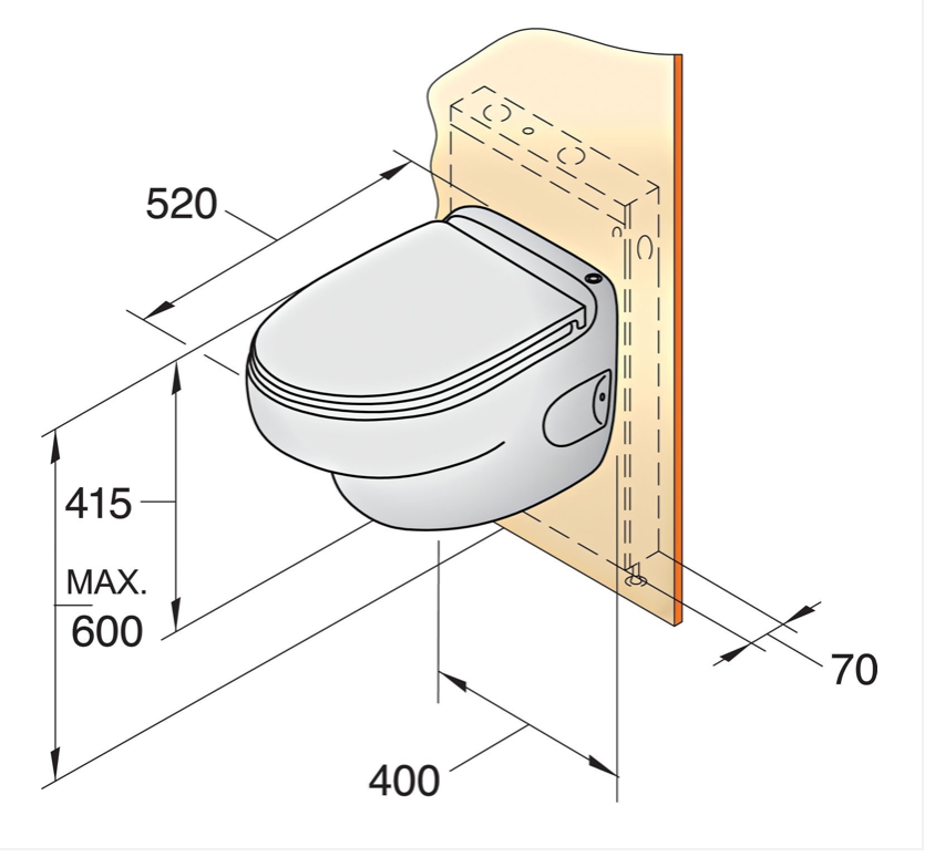 Vetus Toilette Typ-HATO 12V für Wandmontage