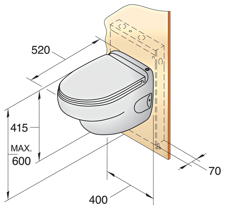 Vetus Toilette Typ-HATO 230V für Wandmontage