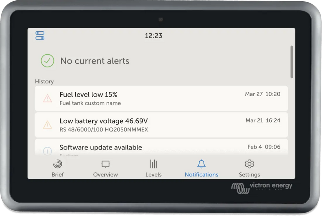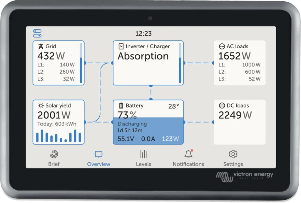 Das Ekrano GX ist ein voll ausgestattetes Kommunikationszentrum, das mit den neuesten Fernüberwachungsfunktionen ausgestattet ist. Erlangen Sie die ultimative Kontrolle mit diesem neuesten Mitglied der GX-Familie und spüren Sie die Macht, wirklich die Kontrolle zu haben.