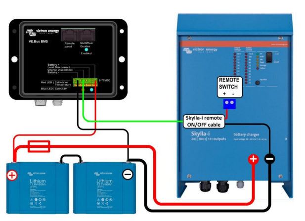 Verwenden Sie dieses Kabel zum Anschluss eines Skylla-i an ein VE.Bus BMS. Das VE.Bus BMS deaktiviert dann das Skylla-i Ladegerät, wenn die Batterien vollständig geladen sind.